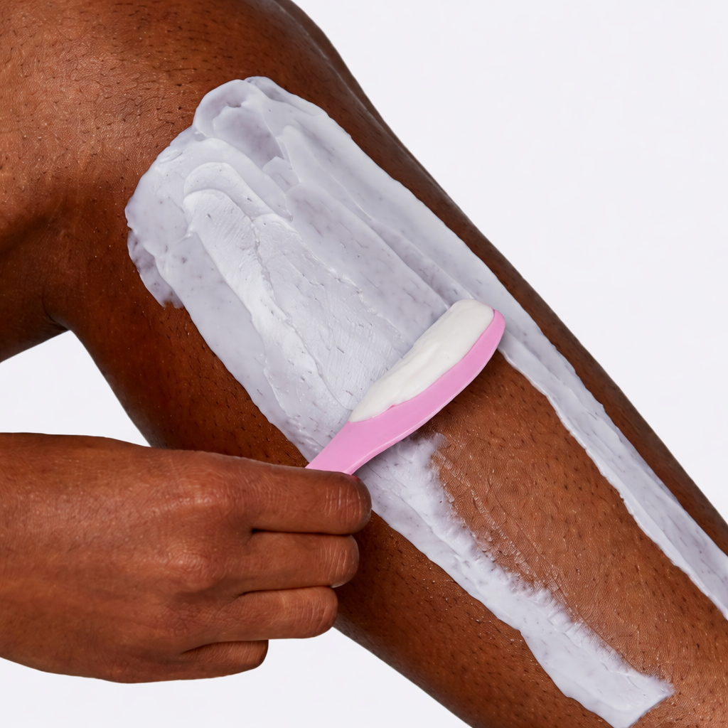 Résultats lisses et uniformes : En agissant chimiquement et de manière homogène sur le poil, elle garantit une épilation propre, régulière et sans zones oubliées, pour une peau parfaitement lisse, sans repousses rêches.